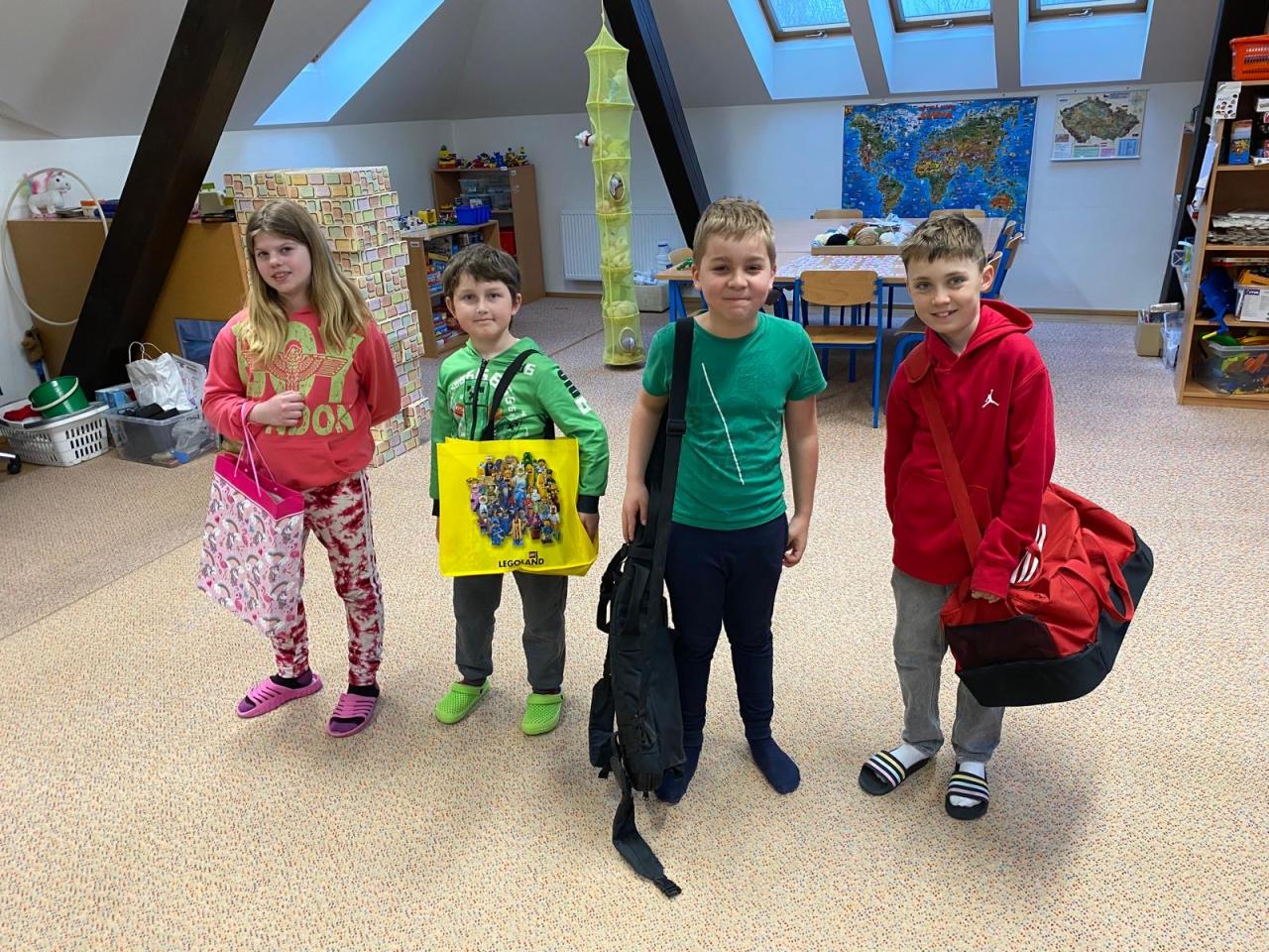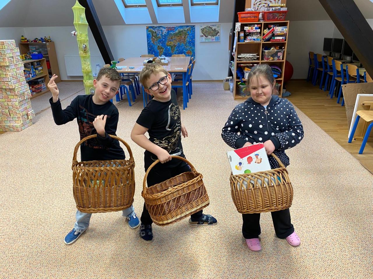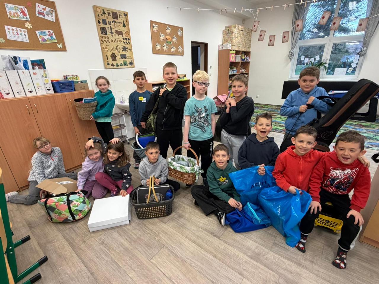 Den bez tašek pak prověřil fantazii všech zúčastněných. Žáci si své učebnice a pomůcky přinesli v nejrůznějších „náhradách“ – objevily se kufry, koše, krabice, kočárky, ale i netradiční nápady, které pobavily spolužáky i učitele.
