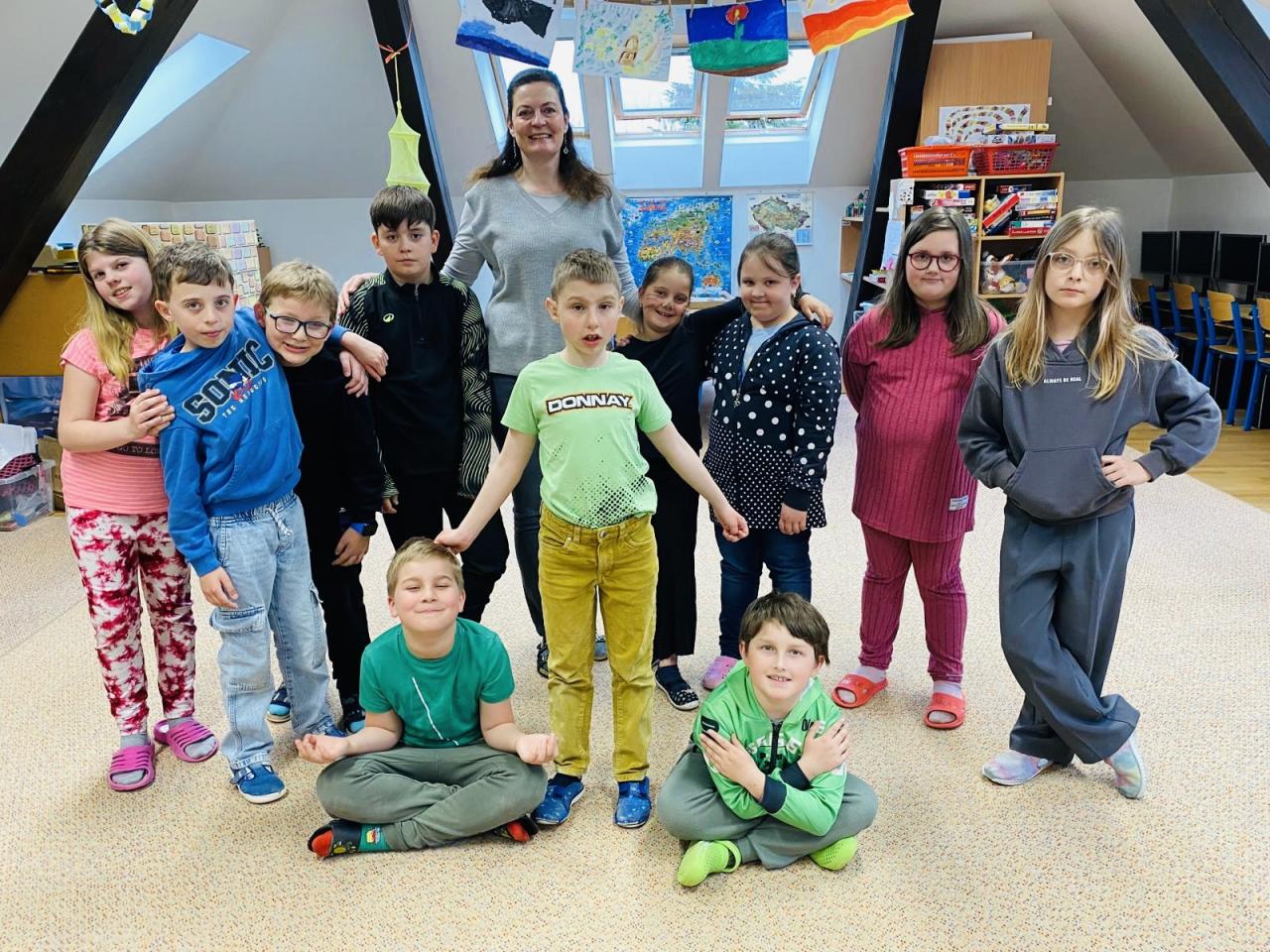 Během Barevného dne se žáci oblékli do jednobarevného oblečení. Třídy tak zářily pestrými odstíny a celá škola se proměnila v barevnou paletu. Nechyběly ani společné fotografie a krátké aktivity zaměřené na spolupráci a dobrou náladu.